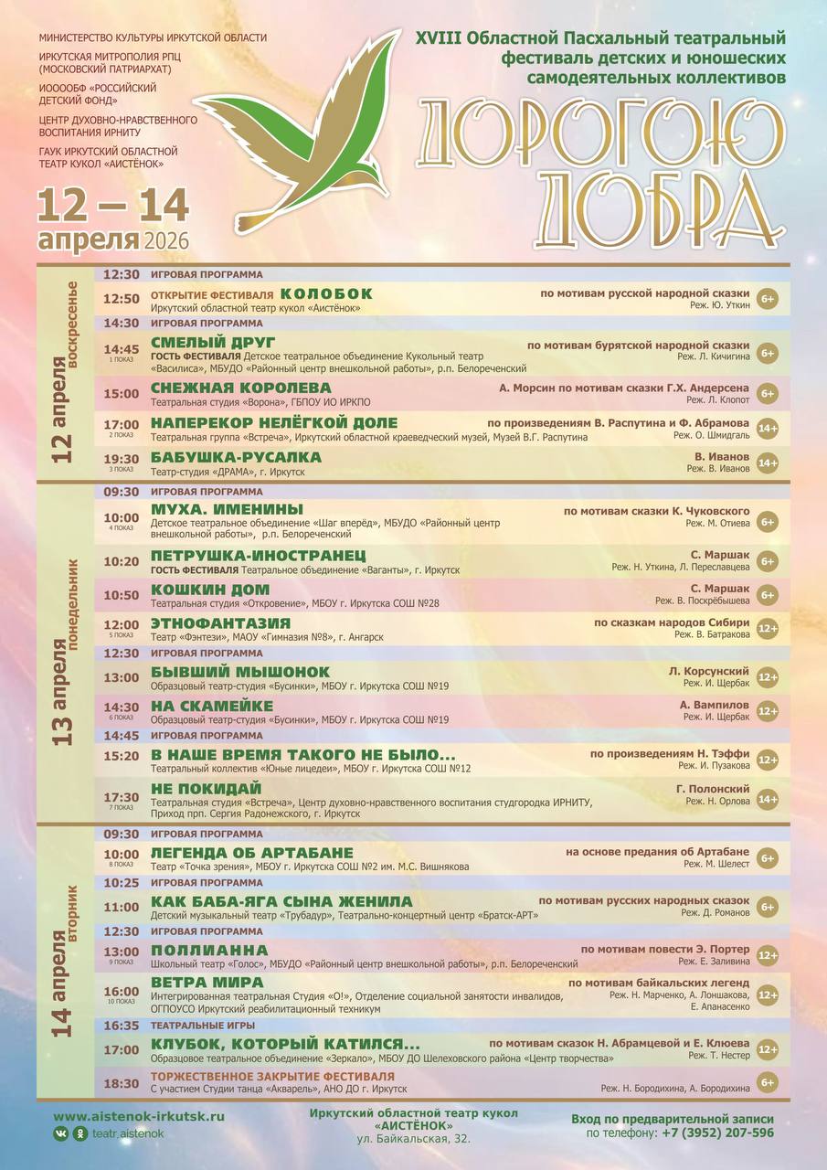 Мы вновь ждём гостей в любимом Театре кукол «Аистёнок» по адресу: ул. Байкальская, 32, с 12 по 14 апреля 2026 года.